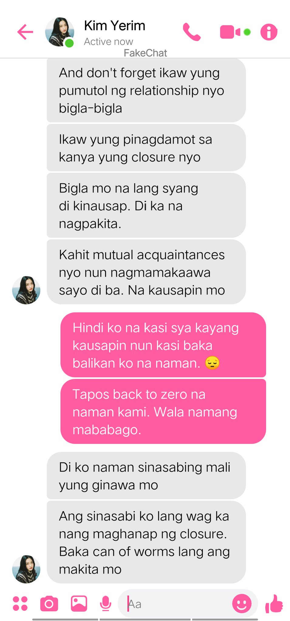 Meron na din akong boyfriend ngayon. Dahil sa napakachildish kong tanong sayo Di mo na ko love Nagalit ka kasi sabi mo para kong tanga sa tanong ko hindi ka nagparamdam hindi ka nagmessage chat ako ng chat pero hindi ka nagrereply. Pumasok ka na nga.