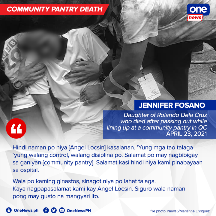 One News Ph On Twitter The Daughter Of The Senior Citizen Who Collapsed And Later Died While Waiting In Line At A Community Pantry Launched By Angel Locsin Says They Re Not Blaming