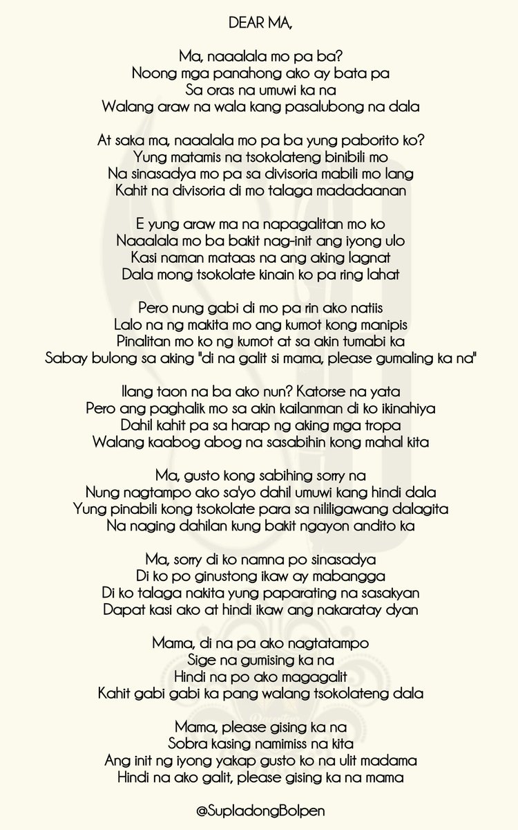Malamang sawa ka na Sa ugali kong ito Na ayaw magpatalo At parang sirang tambucho Na hindi humihinto Sorry na talaga Kung akoy medyo tanga Hindi ako nagiisip Nauuna ang galit Sorry na talaga Sa. Mag sorry ka sakanya napatingala ako at nakita si Mica na nakatingin lang sa from ENGLISH ENGLISH LI at Batangas National High School.